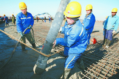 到12月1日,冀東油田一號陸上終端地麵工程兩座10萬立方米原油儲罐基礎、承台、環牆的混凝土澆注均已完成。 冀東油田一號陸上終端地麵工程負責南堡油田一、二號人工島及1號平台所產原油及天然氣的處理、存儲和外輸任務,工程占地麵積約44萬平方米,建成後將成為中國石油最大的聯合站。圖為建設工人正在進行混凝土澆注。(張常忠 攝)