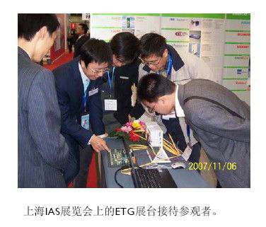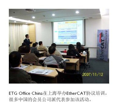 在中國上海的IAS展會上,ETG展台也吸引了眾多的目光。在中國,很多設備製造商已經開始了這項速度最快的工業EtherCAT技術的應用。在上海IAS展會後,ETG 中國代表處為中國的會員單位舉辦了EtherCAT技術實施培訓,該培訓獲得了廣大會員的廣泛認可。