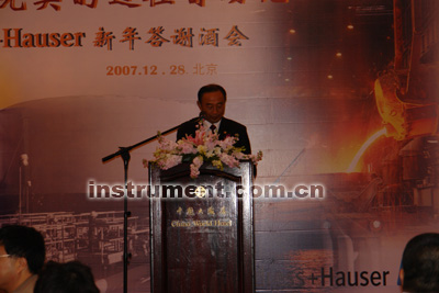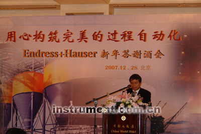 E+H公司中國銷售中心總經理鬱光建博士為酒會致祝酒詞,他對嘉賓們的到來表示熱烈的歡迎,並對大家長期以來對E+H公司的大力支持和幫助,表示由衷的感謝。隨後鬱光建總經理介紹了E+H公司背景、2007年在中國的銷售情況及業務發展情況,並展望了公司發展的美好前景。與會嘉賓對E+H公司在過去一年中取得的成績深表敬佩。