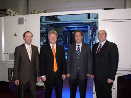 Dr. Dietrich Hunold(巴頓菲爾事業部經理)(右二) 、Bernhard Zöhling(巴頓菲爾發展部負責人)(右一) 、Walter Burgstaller(貝加萊大客戶經理), (左一) 和 Hermann Obermair,(貝加萊總部銷售部經理)(左二)