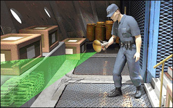 海關或警方人員通過龍蝦眼X射線探測器檢測物品的設想圖