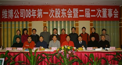 綿陽市維博電子有限責任公司2008年第一次股東會暨第二屆董事會第二次會議於2008年1月20日在四川綿陽隆重召開,會議由公司董事長嶽曾敬先生主持,公司各股東和董事出席了會議。