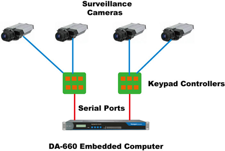視shi頻pin攝she像xiang頭tou常chang用yong於yu安an全quan監jian視shi應ying用yong,通tong常chang由you安an裝zhuang在zai遠yuan端duan的de控kong製zhi中zhong心xin裏li的de鍵jian盤pan控kong製zhi。如ru果guo每mei個ge攝she像xiang頭tou都dou擁yong有you一yi個ge數shu字zi鍵jian盤pan,那na麼me集ji成cheng很hen多duo攝she像xiang頭tou到dao現xian有you的de係xi統tong中zhong將jiang很hen難nan規gui劃hua,相xiang比bi之zhi下xia,如ru果guo隻zhi用yong一yi個ge鍵jian盤pan來lai控kong製zhi每mei個ge攝she像xiang頭tou就jiu簡jian單dan的de多duo。 一家歐洲的工廠自動化公司成功的將Moxa的ThinkCore DA-660嵌入式計算機集成到現有係統,實現了通過單一係統來控製所有攝像頭的功能。該公司發現很容易將現有的應用程序移植到ThinkCore DA-660中,這讓他們很方便的實現利用一個鍵盤控製所有攝像頭。ThinkCore DA-660是實現簡單操作鍵盤和攝像頭的理想控製單元。