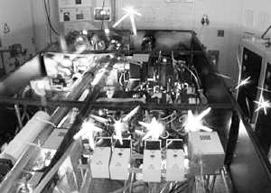 科學家在“大力神”激光係統上添加放大器製成新型激光束。“大力神”是shi一yi個ge摻chan鈦tai藍lan寶bao石shi激ji光guang器qi,體ti積ji龐pang大da占zhan據ju了le實shi驗yan室shi數shu間jian房fang,一yi旦dan光guang反fan饋kui進jin入ru係xi統tong,就jiu會hui在zai連lian續xu的de反fan光guang鏡jing和he光guang學xue元yuan件jian間jian發fa射she,這zhe也ye正zheng是shi能neng量liang聚ju焦jiao的de過guo程cheng。“大力神”先前的最大輸出功率為50太瓦,添加了放大器後激光束的能量可達300太瓦,約是美國所有發電站輸出功率的300倍。測量結果顯示激光的強度可達到每平方厘米2×1022瓦特,其瞬間能量相當於用一麵巨大的放大鏡將太陽射向地球所有光束集中到一個沙礫上。激光的發射時間僅為30飛秒,時間極短卻可以將能量集中到1.3微米的一個點上,這個大小相當於人類頭發直徑的百分之一。