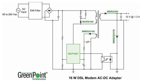 安森美半導體(ON Semiconductor,美國納斯達克上市代號:ONNN)推出用於xDSL調製解調器的16瓦(W)交流-直流(ac-dc)適配器的GreenPoint
