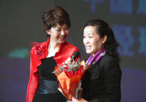 中國通用技術(集團)控股有限責任公司總經理(右)李讜榮獲“2007中國十大經濟女性年度人物”獎,並發表獲獎感言。(記者周雷剛攝)