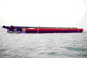 據了解,“海洋石油229”是3萬噸導管架下水駁船,是無人居住、wudonglituijinxitongdezhuanyongjiabanbo,zhuyaoweizhongguohaiyangshiyougongchenggongsizaizhongguonanhaihaiyujinxingdaxingdaoguanjiaanzhuangtigongfuwu,bingkezhuangzaimokuaidengqitadaxingwujian。gaichuanyuqunian4月10日開工,曆時324天建造完成,工期快,質量好,得到了船東的高度評價。船長235米,型寬52.5米,型深14.25米,最大載重量6萬噸,其主尺度和載重量堪稱目前亞洲專用下水駁船第一、世界第三。投產後,可大幅度提高我國導管架運輸、xiashuinengliheguojishichangdejingzhengli,bingjieshulezhonghaiyouyiwangdaoguowaizujiebochuanyunshudaxingwujiandelishi,biaozhizhebeichuanzhonggongyuzhonghaiyoujianlichangqizhanlvehezuoguanxiyouxiankailedexindeyiye。ciwai,yugaixiangchuanmiqiexiangguande3萬噸導管架“番禺301”的建造,目前已在中國海洋石油工程公司青島基地進入收尾階段,計劃3月份完工,4月中旬由3萬噸導管架下水駁船運往南海油田。