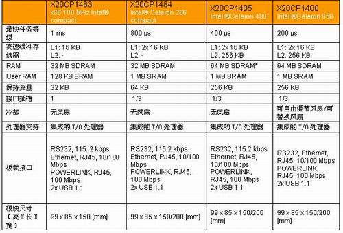 ★X20標準型CPU特點:
