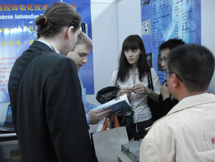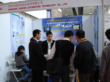 繼2007年後,深圳市顯控自動化技術有限公司再次亮相廣州工控展。本次展會,公司除了展出原有的“Samcon”係列型號外,還帶來了最新推出的主流機型——SA-57係列。“Samcon”係列人機界麵在展會上甫一亮相,便以其精致小巧的外型、絢麗的色彩、高清晰的顯示吸引了業內人士的廣泛關注;前來問詢、參觀、洽談的國內外客戶絡繹不絕。更有來自土耳其客商提出當場將公司參展的產品全部買走。