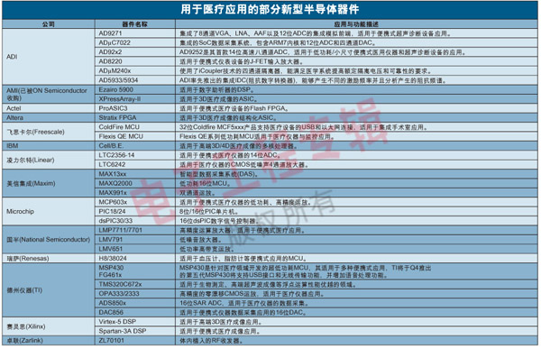 表1:用於醫療應用的部分新型半導體器件