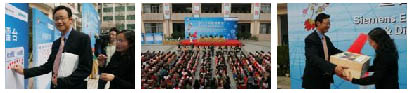 作zuo為wei全quan球qiu領ling先xian的de電dian子zi電dian氣qi公gong司si,西xi門men子zi在zai技ji術shu創chuang新xin方fang麵mian具ju有you雄xiong厚hou的de實shi力li。西xi門men子zi深shen信xin,教jiao育yu是shi建jian設she和he諧xie社she會hui最zui重zhong要yao的de支zhi柱zhu之zhi一yi,並bing且qie始shi終zhong全quan心xin致zhi力li於yu通tong過guo充chong分fen利li用yong自zi身shen在zai全quan球qiu範fan圍wei內nei的de資zi源yuan,為wei中zhong國guo的de教jiao育yu和he可ke持chi續xu發fa展zhan做zuo出chu貢gong獻xian。西xi門men子zi日ri前qian捐juan贈zeng的de探tan索suo箱xiang正zheng體ti現xian了le“寓教於樂”這種典型的先進教學模式。西門子探索箱由“能源與電力”和“環境與健康”2個木箱組成”,主題的設計也契合了當今世界的兩大熱點話題。低齡學童可以靈活使用箱內部件完成在上述領域的20多個試驗。西門子探索箱的兩個目的在於激發低齡學童對科學技術的興趣,並鼓勵教師們通過“玩”簡單的試驗,引導孩子們關注全球性趨勢。