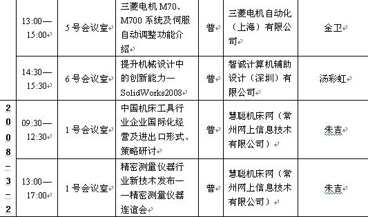 2008年3月28-31日展覽會,展覽會期間展覽會組織機構將聯合業界知名機構舉辦“節能降耗專場論壇”、“2008第三屆國際金屬加工刀具應用技術論壇”等專業高峰論壇和數十場專題技術研討會、講座。具體計劃如下: