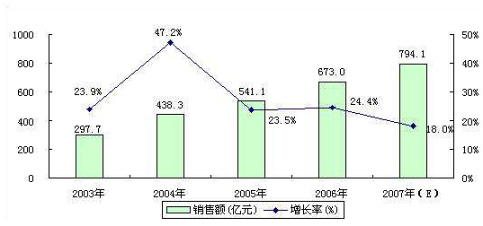 圖1 2003-2007年中國功率器件市場規模