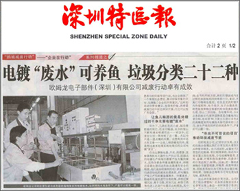落戶深圳不到7年,歐姆龍電子部件(深圳)有限公司幾乎年年都有各種榮譽納入囊中,ISO14001認證、SONY公司綠色夥伴、廣東省清潔生產企業、廣東省環保公益先進單位 、中國外商投資雙優企業等環保榮譽稱號比比皆是。正是以創造良好的環境為已任,歐姆龍公司不斷履行著企業的環保承諾,今年更借“鵬城減廢行動”的東風,自願參與以減量化、再使用、再資源化為原則的減廢行動,再次彰顯了一個一流企業的環保能量、實力和風采。