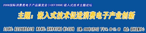 聽取專家觀點,獲得創新設計靈感!了解更多ICEF2008嵌入式技術主題論壇信息,請點擊。