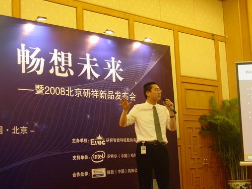 2008年4月18日,在中國特種計算機行業同仁翹首以盼中,國內特種計算機行業排名第一的研祥公司,在北京隆重召開了2008年新品發布會,名為“榮耀同享,暢想未來”,huiyiqudeyuanmanchenggong。yanxiangbujintuichuleduokuanjuyouguojilingxianjishudetezhongjisuanjijipeijian,haipingxuanchuchangjiuyilaiduiyanxiangdalizhichideshijiakehu,binggeiyulongzhongbanjiang。bingqieweilehuibaozhongduowangyoudehouai,bingjishijiedawangyoumendewenti,yingteer(中國)有限公司、微軟(中國)有限公司的高級技術專家及研祥的技術總工程師,和廣大網友進行即時的技術交流和互動。