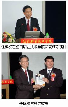 2008年3月26日,廣東江門 — Emerson 大中華區總裁任錦漢應邀赴江門職業技術學院,參加主題為“企業創新與領導力發展”的專題演講,受到了學院廣大師生的熱烈歡迎。演講前,任錦漢被聘為江門職業技術學院客座教授及顧問。