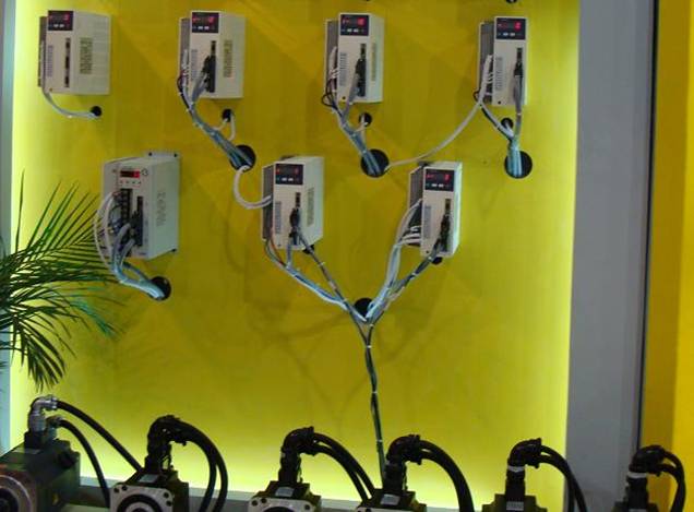 而其它伺服產品如下圖,1個伺服驅動器大都隻能驅動一個電機,多軸係統需要1個單獨的控製櫃,控製櫃的體積甚至超過設備。軸數越多,配置成本會成倍上升。