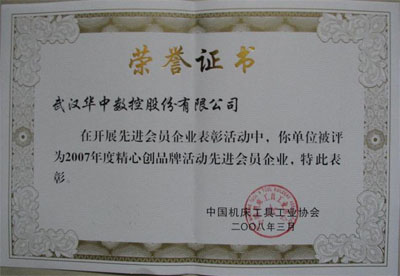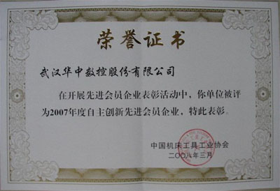 在CCMT2008展會進行期間,中國機床工具工業協會授予華中數控2007年度經濟效益先進會員企業、2007年度自主創新先進會員企業、2007年度精心創品牌活動先進會員企業和春燕獎(TX-6九軸六聯動數控砂帶磨床)等四項榮譽。是數控行業獲獎最多的企業。