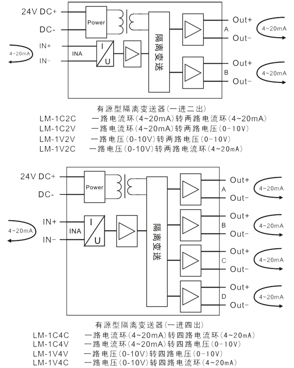 LM-1C4C 一路電流環(4-20mA)轉四路電流環(4-20mA)