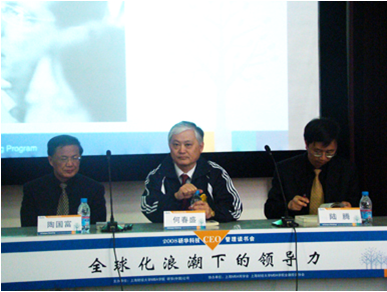 校園成長營首日下午舉辦了的首場2008研華科技CEO管理讀書會,來自校園成長營的學員,《商業評論》、《世界經理人》等10多家知名媒體記者以及上海MBA聯誼會學生等參加了活動。今年讀書會以“全球化浪潮下的領導力”為主題,本期推薦的圖書是Intel公司創始人安迪· 格魯夫所著的《給經理人的第一課》,特邀了研華科技何春盛、上海財經大學陶國富教授及上海市MBA聯誼會秘書長陸滕三位嘉賓,結合“全球化環境下中國職業經理人麵臨的危機與困惑”這個熱點話題進行了深度探討。現場圍繞書中“經理人產出”的觀點,就經理人關注的“團隊”、“授權”、“績效考核”、“公司政治”等現實問題進行了熱烈討論,可以說是連珠妙語中充滿睿智,幽默點評中不失深刻,受益匪淺。