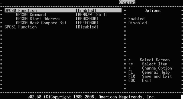 為了使“Master”主板能訪問“Slave”主板的“4K dual-port SRAM”,您必須將兩塊VSX主板的CMOS設置中“Chipset → SouthBridge Configuration → GPCS Configuration”選項“GPCS0 Function”打開,如下圖。