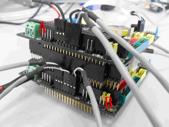 注意:BoR線纜的接法:VSX主板A J7 “Pin2-Pin3”、 “Pin4-Pin5”、 “Pin6-Pin7”和VSX主板B J7相同的信號線兩兩交叉互連,GND“Pin1-Pin1”對接,如下圖。