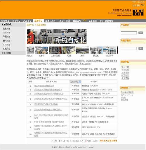 改版後的貝加萊中文網站的內容更加豐富,不僅有豐富的行業應用,還有08年最新產品中心(08年所有產品型號一應俱全)、08年最新資料下載(包括公司樣本、產品目錄、用戶手冊、培訓手冊、軟件下載、刊物下載、AS軟件培訓視頻、典型方案等)、08年培訓安排以及所有展會及其他活動預報,全方位滿足訪問者的需要。豐富的內容也許會讓您眼花繚亂,走迷了路,不過,別急!改版後首頁右上角新增的“站點導航”會讓您重新找到起航的路標。