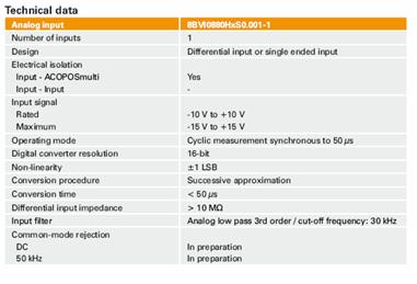 貝加萊最新的ACOPOSmulti係列智能伺服驅動器內部集成了高性能的模擬量反饋接入端口,其具體的性能參數如下:
