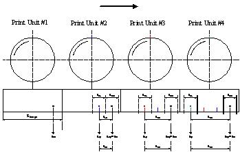 無(wu)軸(zhou)印(yin)刷(shua)機(ji)中(zhong)的(de)套(tao)色(se)控(kong)製(zhi)係(xi)統(tong),是(shi)在(zai)印(yin)刷(shua)機(ji)生(sheng)產(chan)過(guo)程(cheng)中(zhong),通(tong)過(guo)連(lian)續(xu)檢(jian)測(ce)印(yin)刷(shua)完(wan)畢(bi)的(de)材(cai)料(liao)上(shang)的(de)圖(tu)形(xing)的(de)位(wei)置(zhi),計(ji)算(suan)出(chu)印(yin)刷(shua)誤(wu)差(cha),再(zai)通(tong)過(guo)對(dui)連(lian)續(xu)旋(xuan)轉(zhuan)印(yin)刷(shua)版(ban)輥(gun)的(de)相(xiang)位(wei)進(jin)行(xing)微(wei)調(tiao),使(shi)的(de)在(zai)接(jie)下(xia)來(lai)的(de)生(sheng)產(chan)中(zhong)相(xiang)應(ying)的(de)圖(tu)案(an)能(neng)夠(gou)被(bei)印(yin)刷(shua)到(dao)正(zheng)確(que)的(de)位(wei)置(zhi)。要(yao)達(da)到(dao)這(zhe)個(ge)控(kong)製(zhi)目(mu)的(de),首(shou)先(xian)就(jiu)必(bi)須(xu)要(yao)精(jing)確(que)的(de)檢(jian)測(ce)圖(tu)案(an)的(de)位(wei)置(zhi),一(yi)般(ban)印(yin)刷(shua)的(de)過(guo)程(cheng)如(ru)圖(tu)所(suo)示(shi),印(yin)刷(shua)完(wan)畢(bi)的(de)材(cai)料(liao)邊(bian)緣(yuan)的(de)不(bu)同(tong)顏(yan)色(se)的(de)色(se)標(biao),就(jiu)是(shi)用(yong)來(lai)檢(jian)測(ce)各(ge)種(zhong)顏(yan)色(se)位(wei)置(zhi)的(de)標(biao)誌(zhi),由(you)於(yu)被(bei)印(yin)刷(shua)的(de)圖(tu)案(an)和(he)承(cheng)印(yin)物(wu)(紙張或者塑料薄膜)之zhi間jian通tong常chang都dou會hui有you一yi定ding的de色se差cha,利li用yong這zhe一yi點dian,我wo們men就jiu可ke以yi通tong過guo檢jian測ce顏yan色se的de深shen度du,來lai確que定ding是shi否fou有you圖tu案an,因yin此ci,我wo們men所suo說shuo的de用yong來lai檢jian測ce色se標biao的de色se標biao傳chuan感gan器qi(俗稱光電眼)其實是一種高速模擬量傳感器,它可以在承印物高速運動的情況下,辨識出承印物上不同的顏色,並轉換成時域下的電信號。