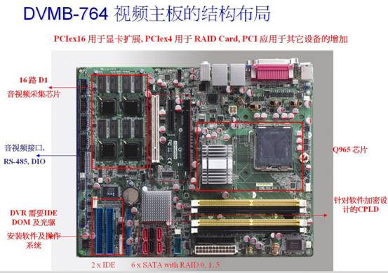 DVMB-764–全實時16 路 D1視頻采集 480FPS 主板特點: