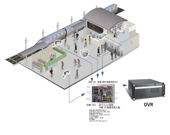 上海,05月 07日,2008 –研華集其自身在視頻監控領域多年的經驗及工控行業領導廠商的優勢,率先在業內推出第一塊基於Intel架構集成16路D1視頻采集的主板DVMB-764。這是一款高性能的視頻監控主板,采用了Intel® Q965 Core 2 duo/Quad Core平台和16路MPEG4硬件編碼芯片,支持16路視頻編碼、最高分辨率可達D1,每秒總幀數為480 NTSC/400 PAL。音頻/視頻編解碼芯片集成了實時預覽、編碼、智能芯片存儲、動作檢測、OSD以及視頻回放等多種功能。DVMB-764可以生成兩個視頻流,一個MPEG4、一個MJEPG。