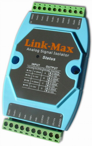 LM-1C2Cdianliuhuangeliqidaiyouyilushurulianglushuchuwanquangeligongneng,shiyonghufangbiandijiangyigeyibiaojierulianggeyiqi,youyusanlutongdaowanquangeli,bimianlegongmoganraoduiceliangjingdudeyingxiang,yebimianledidianweibutongduishebeidailaideweihai。 產品達到滿量程萬分之五的精度與線性度,50ppm的溫度係數,能為用戶提供穩定而精準的物理量隔離與轉換功能。 在某些應用中,也許不需要隔離,但儀表的輸出阻抗有限,無法推動兩個串聯的儀器,這時也需要LM-1C2C提供阻抗變換。 它的輸入阻抗低至100歐,可和任何儀表配合,而輸出可推動750歐的負載,如果外接24V電源,可推動1350歐的儀器。 愛威輪除提供暢銷的LM-1C2C外,還提供本係列的 LM-1C4C一路電流環(4-20mA)轉四路電流環(4-20mA)、 LM-2C4C二路電流環(4-20mA)轉四路電流環(4-20mA) LM-1C2V一路電流環(4-20mA)轉兩路電壓(0-10V)、 LM-1C4V一路電流環(4-20mA)轉四路電壓(0-10V)、 LM-2C4V兩路電流環(4-20mA)轉四路電壓(0-10V)、 LM-1V2V一路電壓(0-10V)轉兩路電壓(0-10V)、 LM-1V4V一路電壓(0-10V)轉四路電壓(0-10V)、 LM-2V4V一路電壓(0-10V)轉四路電壓(0-10V)、 LM-1V2C一電壓(0-10V)轉兩路電流環(4-20mA)、 LM-1V4C一路電壓(0-10V)轉四路電流環(4-20mA)、 LM-2V4C兩路電壓(0-10V)轉四路電流環(4-20mA)等模擬量隔離轉化器。產品為DIN道軌安裝,並提供客戶定製服務。 www.link-max.com 0755-25087474,21553004