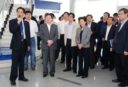 5月13日上午10點,由天津市委副書記、市長黃興國率領的天津市黨政代表團一行88人,在杭州市副市長許邁永、高新區(濱江)區長張耕等領導的陪同下蒞臨中控考察。中控集團常務副總裁鍾國慶熱情地接待了貴賓。