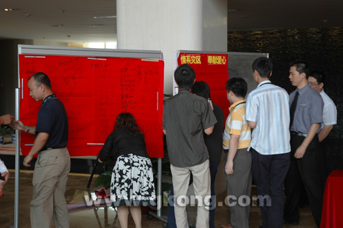 不一會,捐贈“愛心榜”上就寫滿了研祥人愛心的名字,大家都在用最真的愛和最誠摯的心抒寫著研祥人對災區的牽掛和祈禱。