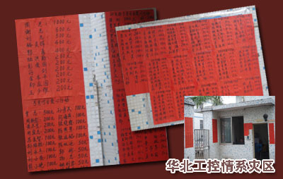 此次四川汶川8級大地震,突如其來,破壞力之大超乎想象。大量房屋倒塌,上萬名國人遇難,交通、通(tong)信(xin)中(zhong)斷(duan),給(gei)災(zai)區(qu)同(tong)胞(bao)造(zao)成(cheng)了(le)巨(ju)大(da)的(de)經(jing)濟(ji)損(sun)失(shi)和(he)精(jing)神(shen)創(chuang)傷(shang)。地(di)震(zhen)發(fa)生(sheng)當(dang)日(ri),華(hua)北(bei)工(gong)控(kong)集(ji)團(tuan)總(zong)部(bu)立(li)即(ji)與(yu)成(cheng)都(dou)分(fen)公(gong)司(si)取(qu)得(de)聯(lian)係(xi),及(ji)時(shi)了(le)解(jie)員(yuan)工(gong)們(men)的(de)安(an)全(quan)狀(zhuang)況(kuang)和(he)災(zai)區(qu)情(qing)況(kuang)。所(suo)有(you)員(yuan)工(gong)密(mi)切(qie)關(guan)注(zhu)受(shou)難(nan)同(tong)胞(bao),為(wei)了(le)給(gei)予(yu)災(zai)區(qu)人(ren)民(min)及(ji)時(shi)救(jiu)助(zhu),公(gong)司(si)領(ling)導(dao)發(fa)起(qi)了(le)“肩負社會使命,獻出我的愛心”倡議,號召全體員工發揚奉獻精神,積極參與賑災捐款、獻血等活動。全國各地員工響應倡議,紛紛開展捐款、獻血等活動。