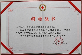 和利時公司員工願和災區人民一起共濟難關,由衷希望同胞早日重建家園。