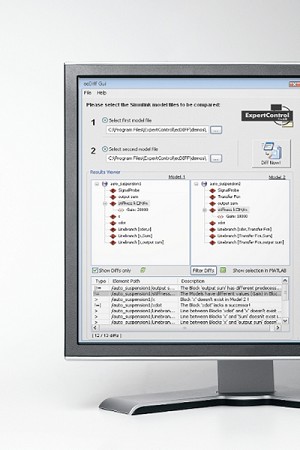 該工具包可以方便用戶通過比較並且找出使用Mathworks, Inc. Stateflow®軟件開發的Simulink軟件框圖、子係統、S函數以及狀態圖之間結構、參數以及視覺上的不同。用戶還可以對這些列出的不同點進行篩選,方便查看結果進行管理。此外,用戶還可以將Simulink模型中的區別進行可視化顯示,並將它們導入到Excel表中進行進一步分析研究。