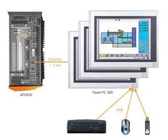 使用瘦客戶機技術的PANEL PC 300,使用標準ETHERNET,可以為用戶提供一個遠距離操作顯示的最佳、最經濟的解決方案。