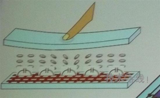 用yong手shou指zhi和he輸shu入ru筆bi等deng在zai麵mian板ban表biao麵mian施shi加jia應ying力li,會hui使shi液ye晶jing分fen子zi的de分fen布bu狀zhuang態tai發fa生sheng變bian化hua,從cong而er導dao致zhi液ye晶jing分fen子zi的de電dian荷he容rong量liang變bian化hua,所suo以yi可ke通tong過guo檢jian測ce電dian荷he容rong量liang變bian化hua實shi現xian觸chu摸mo輸shu入ru。