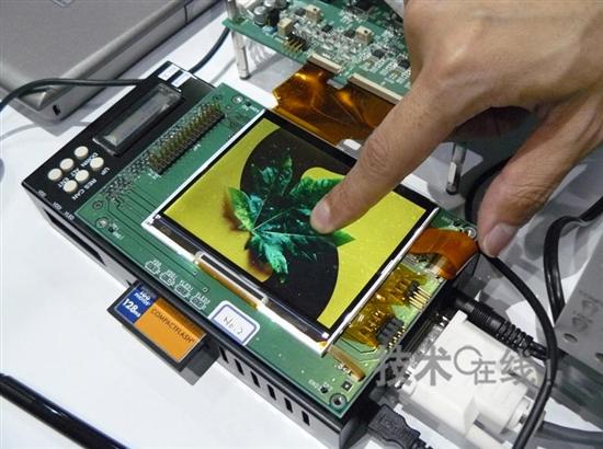 在新聞發布後的采訪中,該公司展示了配備觸摸傳感器功能的4英寸試製品,並演示了在PC上顯示檢測到的手指按壓部分。試製品的像素為640×480像素(VGA),因形成傳感器使開口率降低了20~30%左右。