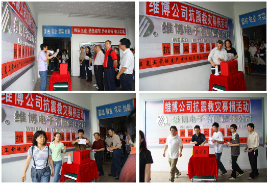 維博在受災後不僅積極自救,並自發組織為重災區人民募捐善款,為重災區人民奉獻愛心。參加這次募捐的不僅有公司領導、部門經理、各ge崗gang位wei員yuan工gong,更geng有you維wei博bo的de清qing潔jie工gong主zhu動dong要yao求qiu為wei災zai區qu人ren民min先xian上shang自zi己ji微wei薄bo的de一yi點dian心xin意yi,在zai這zhe次ci自zi發fa募mu捐juan活huo動dong中zhong,表biao現xian出chu了le許xu都dou感gan人ren的de行xing為wei和he員yuan工gong動dong情qing的de話hua語yu,維wei博bo公gong司si全quan體ti員yuan工gong都dou主zhu動dong自zi願yuan參can加jia了le此ci次ci募mu捐juan。會hui後hou,維wei博bo公gong司si黨dang員yuan響xiang應ying上shang級ji黨dang委wei的de號hao召zhao,參can加jia了le“獻愛心,積極繳納特殊黨費”的活動。這些募捐活動充分表現出了維博公司集體團結的力量及人性的善良和覺悟,也充分體現了維博公司強烈的社會責任心。