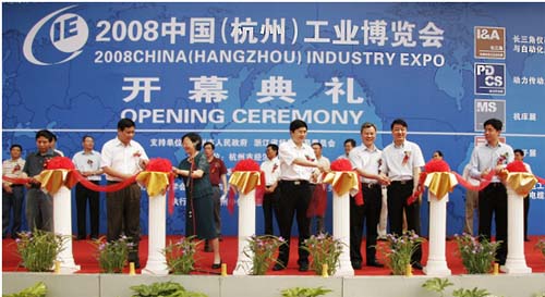5月23日~25日(周末),由浙江省儀器儀表學會、浙江省儀器儀表行業協會、浙江省自動化學會等共同主辦的2008中國(杭州)工業博覽會,在杭州和平國際會展中心隆重開幕。中控科技集團董事長褚健先生參加了剪彩儀式。