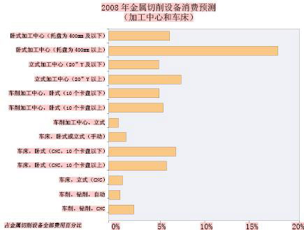 研究表明,美國的機加工車間將比2007年投入更多的資金購置CNC數控機床。根據預測,2008年,金屬加工車間的機床消費量將幾乎等於2007年消費總和的2倍。加工車間2008年的總消費量將突破17億美元, 2007年的總消費量為7.85億美元。