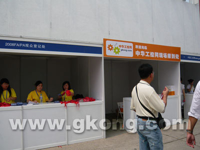 中華工控網作為本次2008FA/PA展(zhan)主(zhu)辦(ban)方(fang)指(zhi)定(ding)的(de)網(wang)絡(luo)支(zhi)持(chi)媒(mei)體(ti),全(quan)程(cheng)參(can)與(yu)此(ci)次(ci)大(da)會(hui)的(de)報(bao)道(dao)工(gong)作(zuo),並(bing)在(zai)會(hui)場(chang)觀(guan)眾(zhong)登(deng)記(ji)處(chu)設(she)置(zhi)中(zhong)華(hua)工(gong)控(kong)網(wang)現(xian)場(chang)報(bao)道(dao)處(chu)。在(zai)報(bao)到(dao)處(chu)接(jie)待(dai)通(tong)過(guo)中(zhong)華(hua)工(gong)控(kong)網(wang)報(bao)名(ming)參(can)展(zhan)觀(guan)眾(zhong)的(de),將(jiang)會(hui)獲(huo)得(de)精(jing)美(mei)禮(li)品(pin)一(yi)份(fen)。