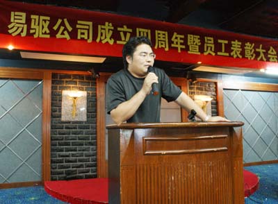 6月15日,公司組織全體員工遊覽了仙湖植物園以後,下午3時shi踏ta上shang離li開kai仙xian湖hu植zhi物wu園yuan的de車che返fan回hui南nan方fang苑yuan大da酒jiu店dian,在zai南nan方fang苑yuan三san樓lou大da廳ting,易yi驅qu公gong司si新xin老lao員yuan工gong歡huan聚ju一yi堂tang,沉chen浸jin在zai一yi片pian喜xi慶qing之zhi中zhong,人ren人ren臉lian上shang都dou洋yang溢yi著zhe快kuai樂le與yu幸xing福fu的de神shen情qing,下xia午wu4時,慶典大會由人力資源部經理茹柏飛主持並宣布正式開始,在一片持久、熱烈的掌聲中公司領導朱華東總經理上台致辭,發言中朱總首先祝賀公司迎來四周歲生日,對支持易驅,關注、關心易驅發展的所以人表示衷心的感謝。隨後他與大家一起,回顧了公司從1999年組建核心團隊以來到04年公司正式注冊成立,以及發展至今天所取得的成就,這是一個風雨兼程、艱苦奮鬥、頑強拚搏的光輝曆程,也是一個見證易驅公司從無到有、從小到大、從cong弱ruo到dao強qiang變bian化hua的de曲qu折zhe曆li程cheng。接jie著zhe,朱zhu總zong綜zong合he分fen析xi了le易yi驅qu公gong司si目mu前qian所suo麵mian臨lin的de現xian狀zhuang,他ta指zhi出chu公gong司si之zhi所suo以yi能neng在zai四si年nian中zhong如ru此ci快kuai速su地di成cheng長chang,很hen重zhong要yao的de一yi點dian就jiu是shi我wo們men所suo選xuan擇ze的de行xing業ye,國guo家jia現xian在zai正zheng在zai極ji積ji倡chang導dao節jie能neng減jian排pai政zheng策ce,而er我wo們men所suo生sheng產chan、xiaoshoudebianpinqichanpinshunyinglezheyilishichaoliu,juyouguangkuodeshichangqianjing,zheyeshimuqianwomenyuxuduoqitagaokejiqiyexiangbideyoushisuozai。ruhezhengquebawohaowomendeyoushi,guibiyouyuqiyefazhanlishiduan、規模並不大、zaishichangjingzhengzhonghaichuyuxiangduiruoshidebuzu,shiwomenmeigeyiqurenzaigongzuozhongsuoyaosikaodewenti。weilaiwomendelurengranyouquzhe,danshigongsixiangxin,zhiyaodajiatongxintongde,jixufendou,yidinghuiweiyiququdegengdadeshengli。