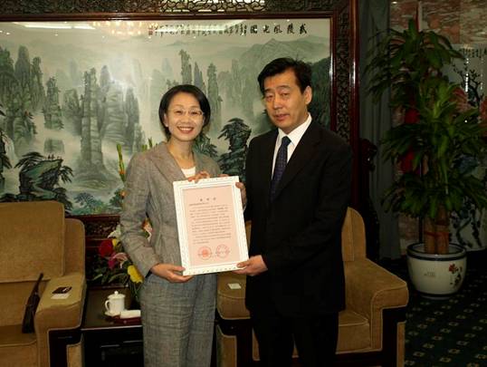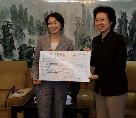上銀科技蔡惠卿總經理(左)代表上銀科技通過海協會捐贈312萬元,支持汶川抗震救災