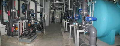 “水立方”中遊泳池的水質是按照現行FINA標準設計的,該係統采用“石英砂過濾器+全流量臭氧消毒係統+活性炭吸附”的逆流式池水循環處理工藝,具體流程如下:遊(you)泳(yong)池(chi)水(shui)麵(mian)的(de)溢(yi)流(liu),會(hui)經(jing)過(guo)周(zhou)圈(quan)的(de)溢(yi)流(liu)溝(gou)回(hui)到(dao)均(jun)衡(heng)水(shui)箱(xiang),水(shui)經(jing)毛(mao)發(fa)收(shou)集(ji)器(qi)去(qu)除(chu)毛(mao)發(fa)及(ji)大(da)顆(ke)粒(li)物(wu)質(zhi)後(hou),由(you)循(xun)環(huan)水(shui)泵(beng)加(jia)壓(ya),經(jing)過(guo)絮(xu)凝(ning)劑(ji)投(tou)加(jia)並(bing)充(chong)分(fen)反(fan)應(ying)後(hou),進(jin)入(ru)石(shi)英(ying)砂(sha)過(guo)濾(lv)器(qi),去(qu)除(chu)懸(xuan)浮(fu)物(wu)、色se度du。過guo濾lv出chu水shui進jin行xing臭chou氧yang氧yang化hua消xiao毒du,經jing反fan應ying罐guan後hou進jin入ru活huo性xing炭tan罐guan,濾lv後hou水shui進jin入ru換huan熱re單dan元yuan,采cai用yong分fen流liu加jia熱re,經jing過guo板ban式shi換huan熱re器qi的de水shui與yu未wei被bei加jia熱re的de水shui充chong分fen混hun合he,池chi水shui在zai線xian采cai水shui管guan處chu設she溫wen度du監jian測ce點dian,用yong於yu調tiao節jie熱re媒mei量liang,從cong而er達da到dao控kong製zhi水shui溫wen的de目mu的de。