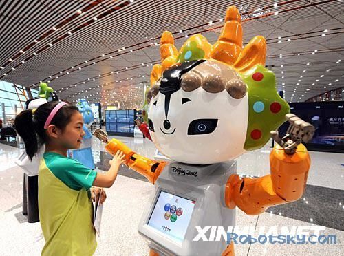 當日,在民航局及機場奧運團隊支持下,由中國民航大學研製的5個奧運福娃機器人,亮相北京首都國際機場T3航站樓。奧運會期間,奧運福娃機器人將守候在北京首都國際機場,迎送到港離港的奧運大家庭成員和國內外賓客。