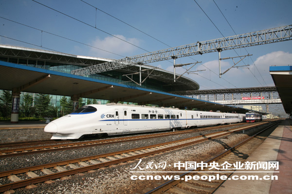 7月20日,曆經百年滄桑的膠濟鐵路(濟南至青島)終(zhong)於(yu)展(zhan)露(lu)新(xin)顏(yan),經(jing)過(guo)中(zhong)國(guo)鐵(tie)建(jian)電(dian)氣(qi)化(hua)局(ju)聯(lian)合(he)體(ti)一(yi)年(nian)多(duo)的(de)艱(jian)苦(ku)建(jian)設(she),具(ju)有(you)多(duo)項(xiang)國(guo)內(nei)國(guo)際(ji)領(ling)先(xian)技(ji)術(shu)水(shui)平(ping)的(de)膠(jiao)濟(ji)鐵(tie)路(lu)客(ke)運(yun)專(zhuan)線(xian)順(shun)利(li)實(shi)現(xian)東(dong)段(duan)通(tong)車(che)運(yun)營(ying),由(you)過(guo)去(qu)的(de)客(ke)貨(huo)混(hun)跑(pao)升(sheng)級(ji)為(wei)客(ke)貨(huo)分(fen)線(xian)運(yun)輸(shu)。作為直接服務於2008北京奧運會的重點交通項目,來自世界各地的參賽運動員和觀眾,將有幸乘坐這條高速、美觀、綠色的奧運大通道直抵位於青島的奧帆賽賽場。圖為時速超過兩百公裏的動車組緩緩駛入膠濟客專的濰坊車站。 (趙守民 劉渝攝影報道)